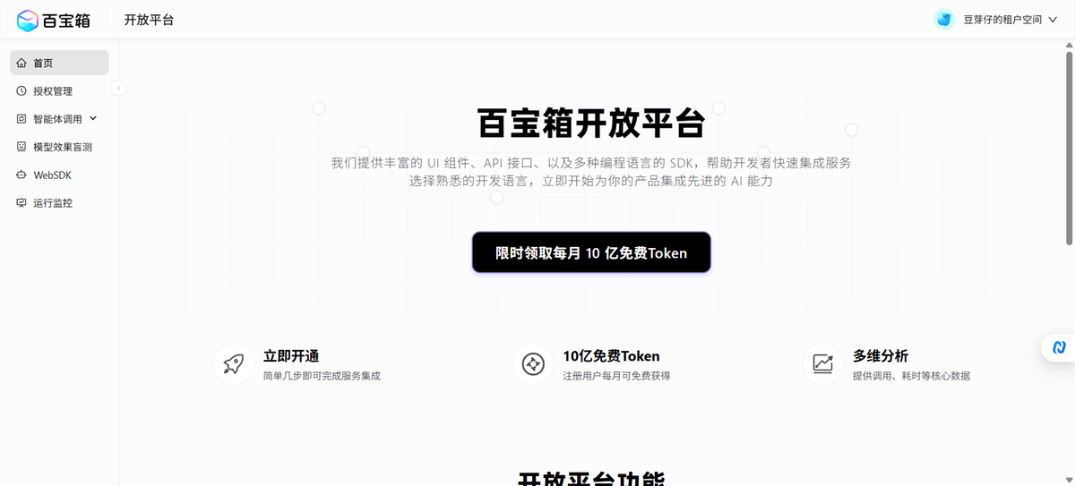 蚂蚁百宝箱开放平台是一个提供全方位AI能力支持的集成式服务开放平台。通过提供OpenAPI、前后端SDK(Python、Java、Nodejs),以及可一键在Web页嵌入智能体对话界面的WebSDK等服务,助力用户在自己的业务流程中快速集成智能体对话、大模型效果盲测等多种AI应用场景,助力业务拥抱AI。