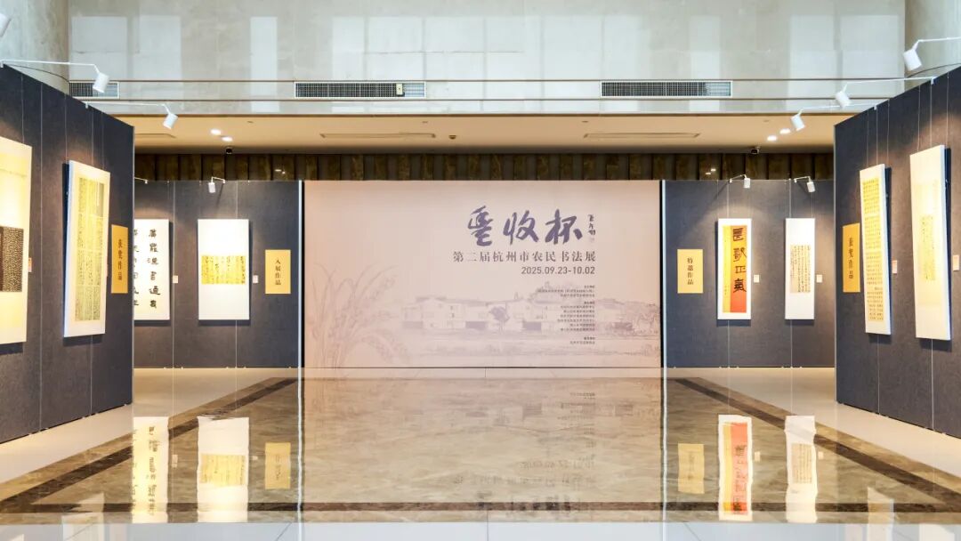 9月23日,恰逢秋分时节与第八个中国农民丰收节,“丰收杯”第二届杭州市农民书法展在萧山区新塘街道党群服务中心隆重开幕。本次展览以“乡村振兴”为主题,共展出书法作品110件,题材丰富、风格多样,充分展现了杭州乡村的文化活力与农民群众的精神风貌。