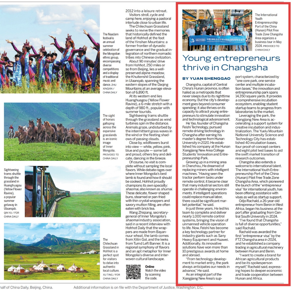 编者按:中国日报《中国观察报》(China Watch)2025年9月29日在美国《时代周刊》刊发文章,讲述长沙依托优良的产业创新生态、系统的扶持政策以及“低成本创业、高品质生活”等优势,提供多元化发展机会和平台,持续吸引海内外年轻人到湖南长沙创新创业。