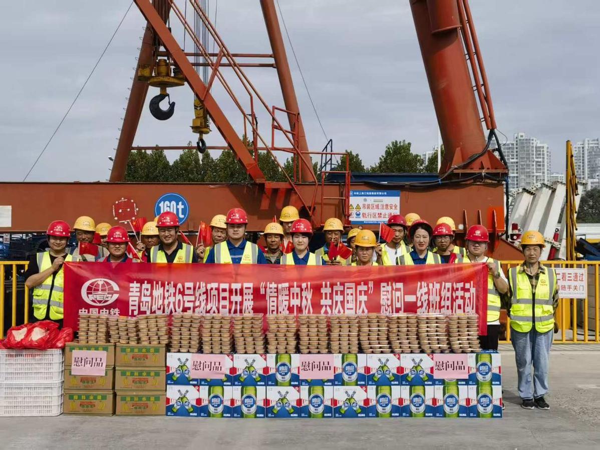 金秋送爽,丹桂飘香。在中秋、国庆双节来临之际,为感谢一线建设者的辛勤付出,营造温馨和谐的节日氛围。9月29日,中铁上海局青岛地铁6号线项目部携手中铁上投青岛地铁6号线总包部组织开展“情暖中秋 共庆国庆”慰问一线班组活动,为坚守在施工一线的员工们送去了节日的祝福和诚挚的关怀。