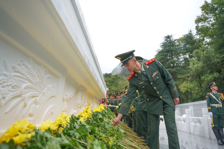 9月30日,武警贵阳支队官兵向烈士敬献鲜花。谭力壬 摄