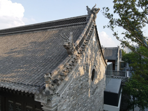 在建筑材料的运用上,项目更是将匠心融入每一处细节:累计使用青砖180万块,以不同色调巧妙搭配,辅以6种精准尺寸,创新衍生出17种传统与现代结合的砌筑形式;灰瓦用量达195万余块,细分冷、中、暖3类色调,适配3种专业瓦屋面施工工艺,确保屋面既有古韵质感,又具备现代建筑的耐用性。其中,项目东侧院落特意选用偏暖色调的青砖,与周边古城垣的黄色肌理相呼应,在色彩碰撞间勾勒出最具郑州商代都城特色的建筑轮廓,让历史的厚重与建筑的美感浑然一体。