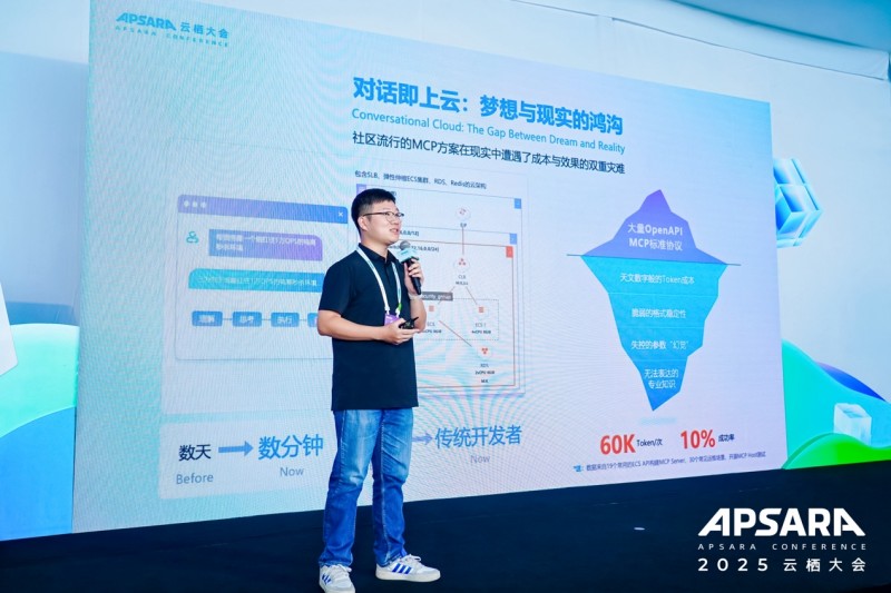 作为阿里云企业上云领域的专家,他在分享中首先复盘了团队在项目初期的探索。“我们都期望AI能扮演‘云计算专家’的角色,但直接将社区流行的MCP方案应用于复杂的上云场景,效果并不理想,”他介绍道,“我们很快发现,这背后隐藏着巨大的工程挑战,包括大量的Token消耗、失控的参数‘幻觉’,以及难以传递的隐性专业知识。”
