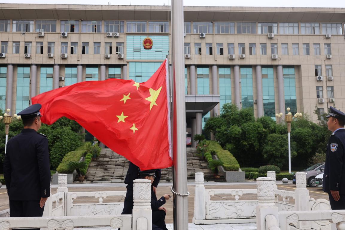 迎国庆,颂祖国,话担当。9月30日上午,河南省镇平县人民法院举行升国旗仪式。随着雄壮激昂的《义勇军进行曲》响起,升旗手奋力挥臂将国旗抛向空中,鲜艳的五星红旗冉冉升起,法院干警以独特而深情的方式,向祖国母亲献上最真挚的祝福。未来的日子里,镇平县法院将继续秉持初心,牢记使命,为祖国的司法事业贡献法院的力量。