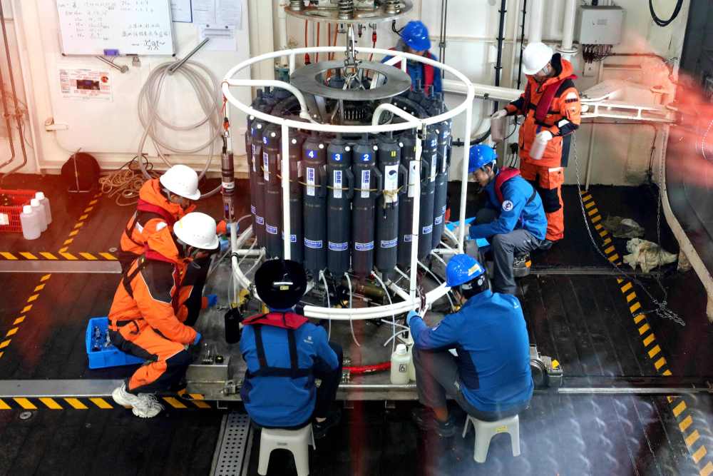 “早先‘雪龙’号的实验室还没经过改造,没有大型CTD(温盐深剖面仪),只有一个小型CTD,每瓶只能采2.5升的水,生物化学排水要非常吃力地去挂手动翻盖采水器。”郝锵说,现在不仅有大型CTD,而且配有月池系统,即使在100%的密集浮冰区也能从容作业。