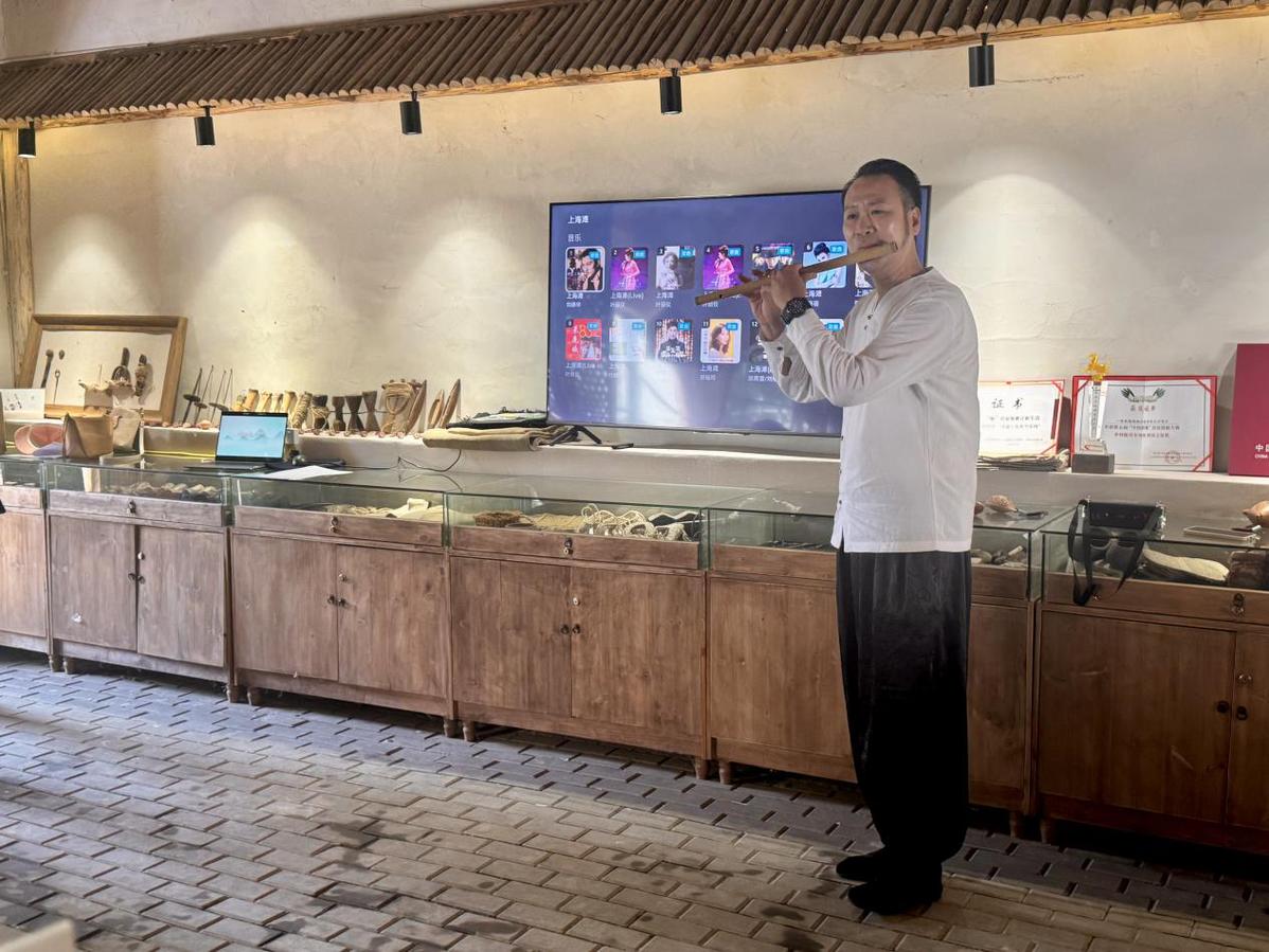 宁夏民间乐器代表性传承人孙泽垚现场演奏国家级非遗民族乐器—泥哇呜,外国人才们聆听千年陶埙苍凉悠远的音色,见证黄土与火焰锻造的艺术奇迹。大家亲手尝试吹奏,体验这一古老艺术的独特韵味,用音符对话文明。