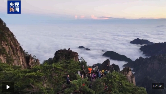 今年国庆中秋假期,鲜艳的五星红旗在黄山之巅迎风飘扬。迎客松前,游人如织,人们在这里赏美景、观秋色,尽享悠然假日。
