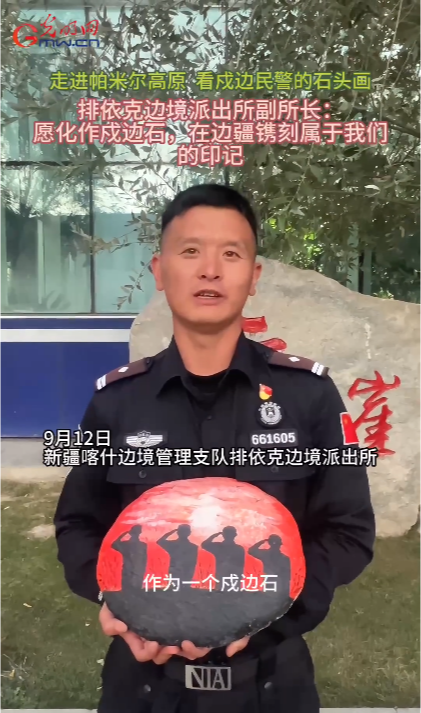 近日,新疆喀什边境管理支队排依克边境派出所民警在帕米尔高原创作石头画,将戍边誓言与高原风光融入作品。这些画作既是边疆生活的艺术记录,更是民警们扎根边疆、守护国土的无声宣言。