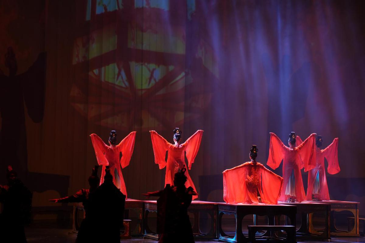 舞台上,黄河浪涛与丝路驼铃交织,唐诗宋韵与国际酒标辉映,120名演员以舞蹈、戏剧、光影特效与威亚特技,将“风土”具象化为流动的艺术画卷——沙砾土壤中萌发的葡萄藤蔓、烈日下挥洒汗水的酿酒人、国际大赛中捧回的1800余项大奖……每一幕皆是对“中国葡萄酒,当惊世界殊”的生动诠释。