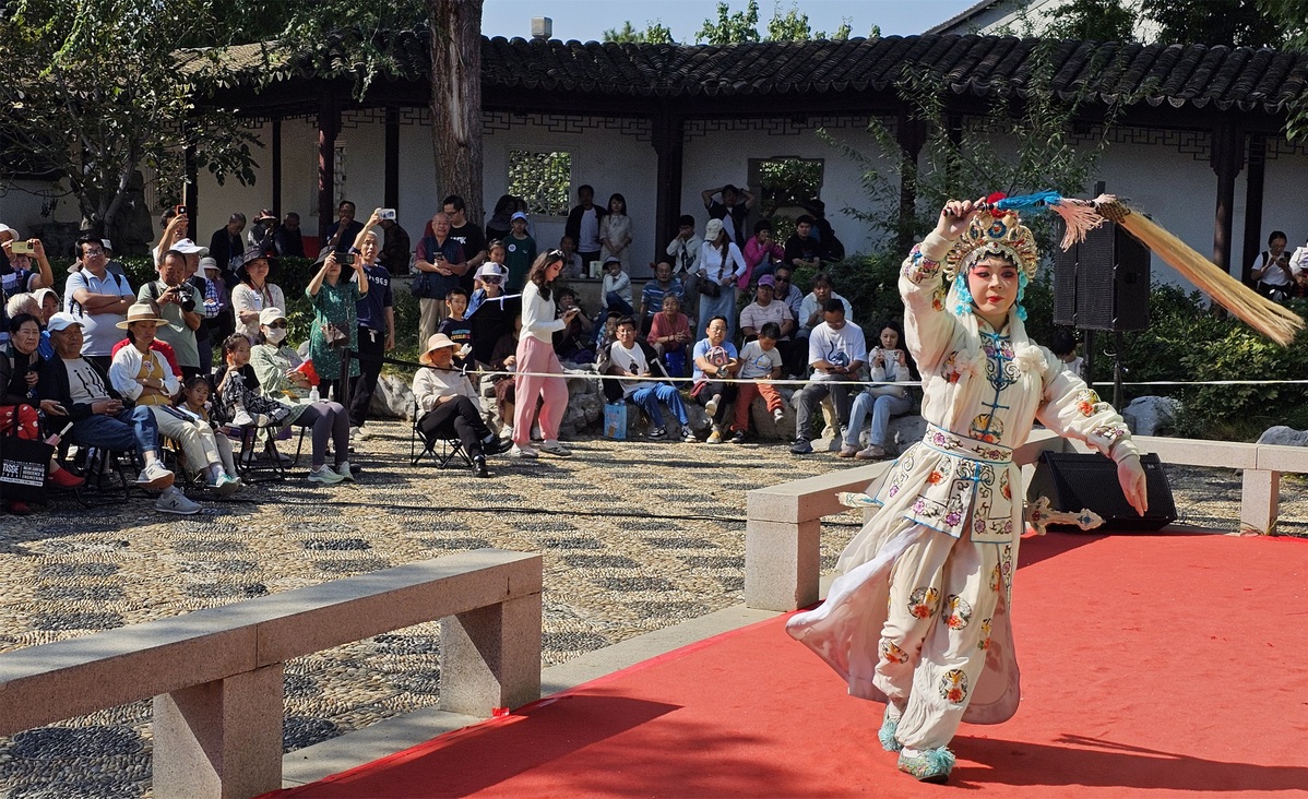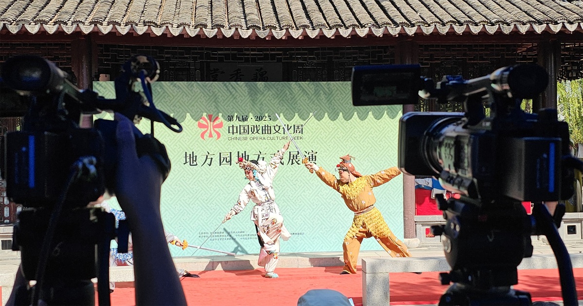 中国日报10月2日电(记者 耿菲菲)2025年9月29日至10月5日,第九届中国戏曲文化周在北京园博园举行。来自全国各地的多家戏曲艺术表演团体在园林之中献上精彩演出,打造了没有围墙的“戏曲大观园”。