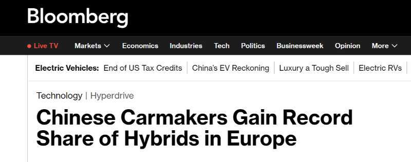 报道指出,这是今年以来中国品牌在欧洲混动车型份额第四次刷新纪录。中国制造商正瞄准欧洲不断增长的电动化汽车市场,其高性价比车型给大众汽车集团等当地传统车企带来竞争压力。