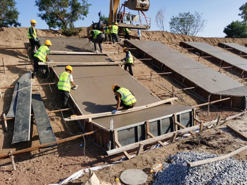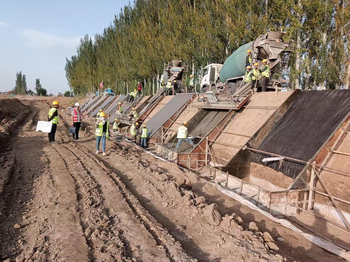 为抢抓工期,宁工局公司项目部采用“挂图作战+动态优化”的管理模式,创新推行“白+黑”“三班倒”作业机制,让施工链条24小时高效运转。项目部技术负责张瑞介绍:“为了确保3.5万立方米渠道混凝土浇筑在10月18日如期完成,我们以小时为单位精细排布工期,把十一黄金周锁定为全力冲刺的‘施工高峰期’。”现场,有的建设者校准模板、有的搅拌混凝土、有的指挥浇筑,每个环节都紧密衔接,施工效率大幅提升。