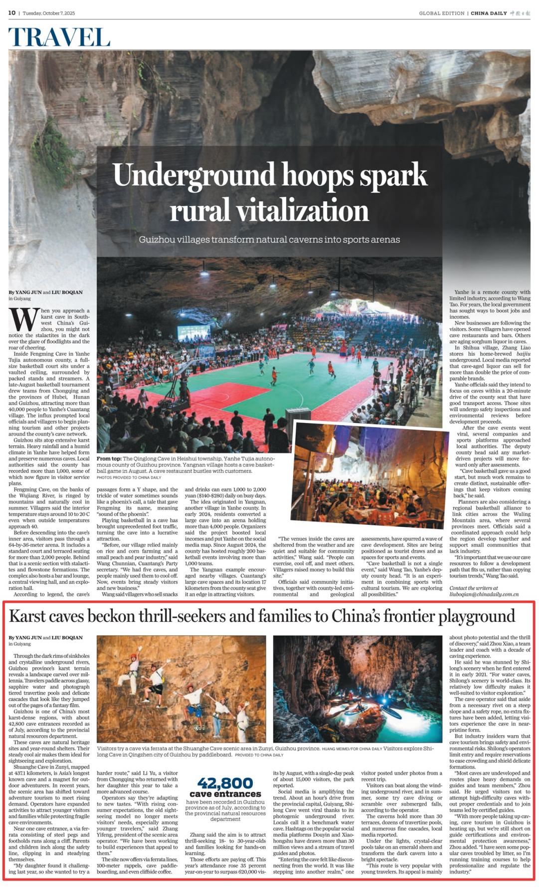 他补充道:“虽然探洞活动日益普及,贵州洞穴旅游持续走热,但目前行业仍面临两大短板:专业向导认证体系不完善与公众环保意识不足。我亲眼见过一些热门洞穴内的垃圾问题,因此正通过开展专业培训,推动行业向规范化、专业化转型。”(作者 杨军 刘伯千 编译 中国日报社贵州记者站)