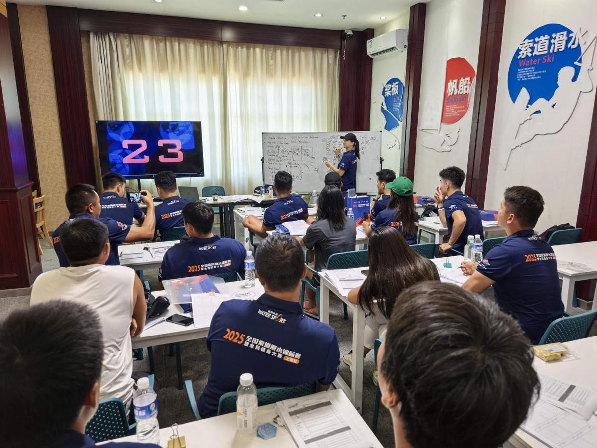 10月6日至10月7日的裁判培训日中,为本次比赛的执行裁判进行专业培训的国际裁判邓佩珊表示:“参与培训的都是非常有经验的裁判,只需要将现在最新的系统与规则与大家更新,然后重温一下打分的技巧与经验分享。” 培训期间,邓佩珊带领大家熟悉IWWF(奥委会唯一认可的国际官方滑水组织)的赛制系统,让所有本次全国锦标赛的裁判团与工作人员了解每一个角色与规则的规范与诀窍,以确保比赛顺利进行,遇到状况时能够紧急应对。