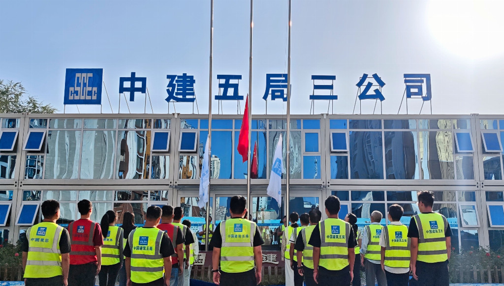 金秋送爽,海河之滨秋意正浓。为弘扬爱国主义精神,凝聚项目建设合力,在国庆节之际,中建五局三公司万卉路项目举行庄严的升旗仪式和爱国观影活动,以庄重仪式与红色教育,筑牢团队思想根基,激发全员使命担当。