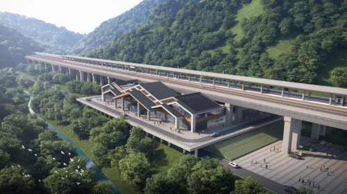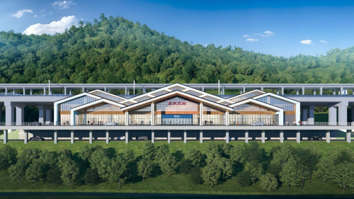 新建彝良北站位于云南省昭通市彝良县城白岩村,站房规模5398.63平方米,采用混凝土框架结构,为线正下式站房。主体建筑包含地上两层和地下一层,地上一层设有候车厅、进站厅、出站厅及旅客服务区;地上二层为设备及办公用房,位于进站广厅两侧。