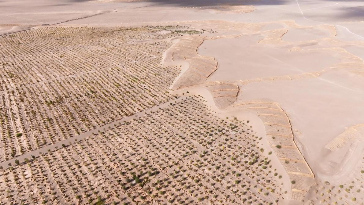 图注:蚂蚁森林666号林(胡杨)阻挡巴丹吉林沙漠移动-2025年摄于甘肃金塔