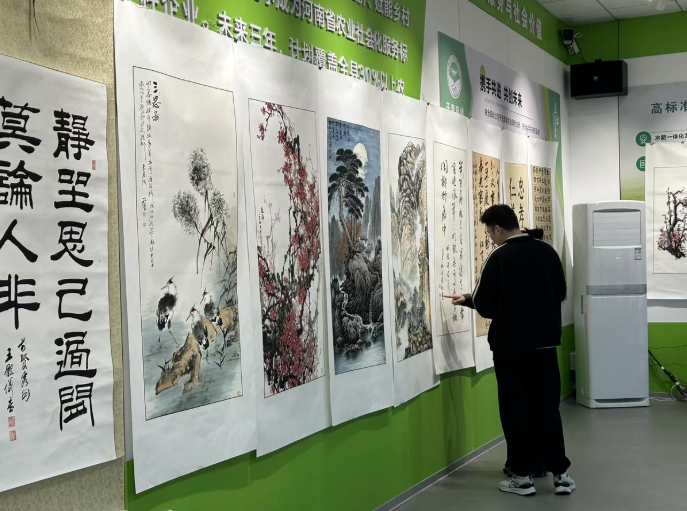 本次展览共展出118幅书画作品,涵盖书法、国画等多种形式。作品主题鲜明、风格多样,既有对祖国壮丽山河的描绘,也有对家乡振兴图景的刻画,生动展现了刘庄店镇的文化风貌与时代气息,吸引了众多观众驻足欣赏。