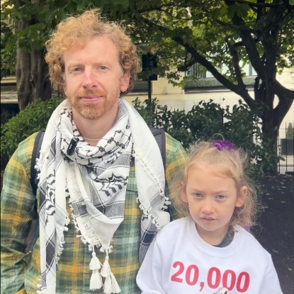 一位带着孩子前来参加抗议的民众说:“每当我看见自己的孩子安睡时,就会想到那些在加沙丧生的儿童。”(记者 郑婉吟 实习生 高可婧 王璟骊)