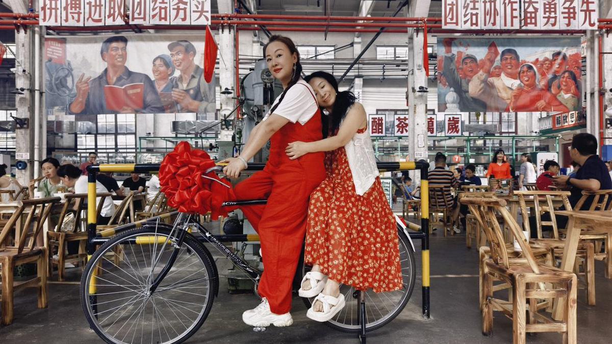 踏入园区,4000平方米的主厂房,已挂上“曙光茶厂”的标牌,并于10月1日起试运营。厂房内,10台旧机床被完整保留下来,它们宛如历史的见证者,静静地伫立在原地;墙上张贴的宣传画和标语,为整个空间增添了浓厚的年代感。在这里不仅可以品尝到湖南各地的米粉、特色茶饮,游客们还纷纷举起手机,记录下这充满工业风情与美食氛围的美好瞬间。