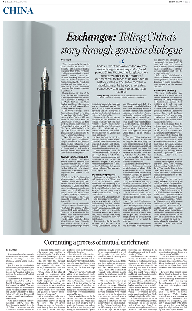 "过去几百年里,文化好奇、经济利益、地缘政治和意识形态冲突在不同历史时期驱动着世界对中国的研究。然而这些探究都被外部议程所左右,使得中国的形象从未完整或真实。" 何培忠说。"因此,中国不仅要被研究,更要增强自我研究的能力。"