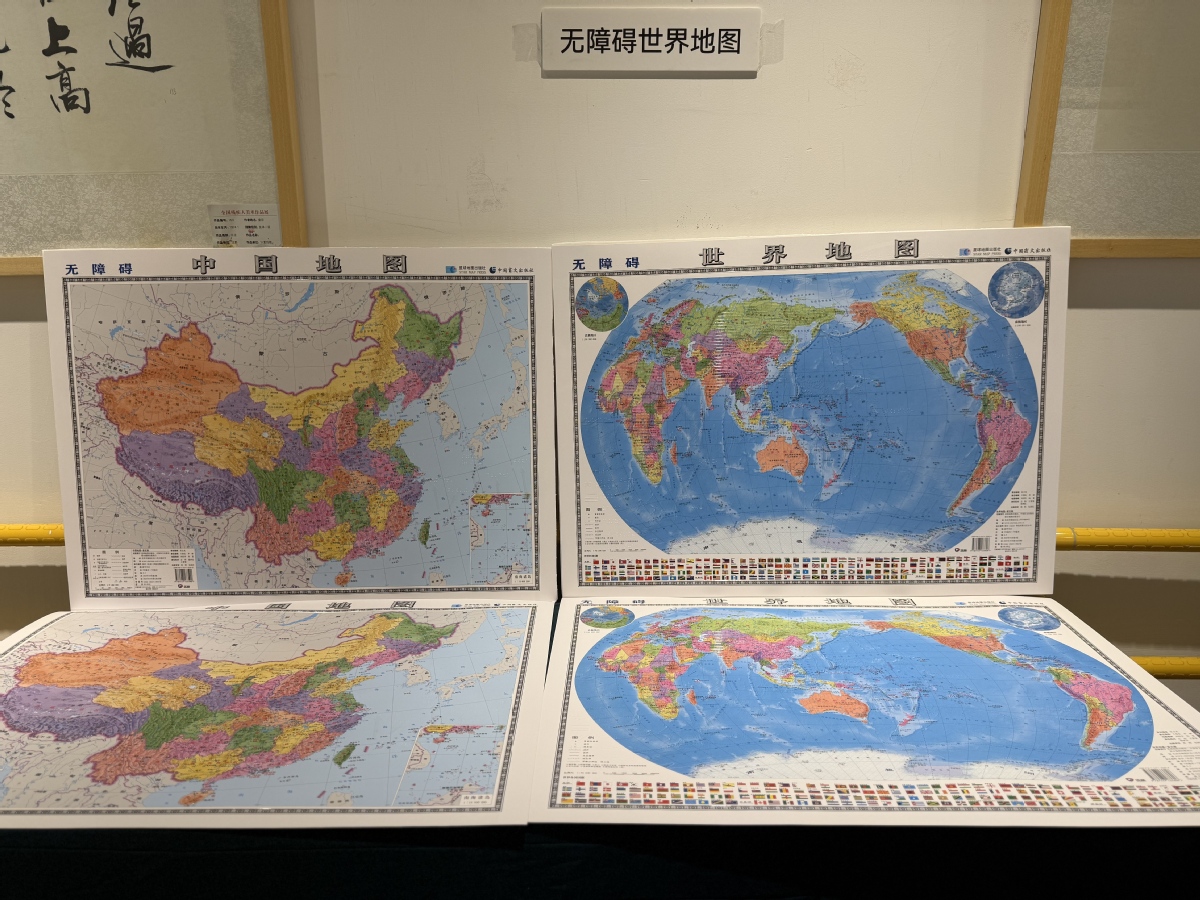 触觉地图在视力残疾人的导航和空间认知方面发挥着重要作用。星球地图出版社与中国盲文出版社在国内首次采用3D滴胶技术批量印刷盲文版《无障碍中国地图》和《无障碍世界地图》,即日起公开发行。无障碍地图采用加厚耐磨特种纸,防水防潮,盲文标注与地理轮廓精准对应。中国地图涵盖 34 个省级行政区 + 重点地理标志,世界地图利用不同浮雕纹理标注七大洲四大洋。成品尺寸530mm*730mm,方便摆放在书桌上供视障人士双手触摸感知。在无障碍地图出版过程中,两家出版社以"以精准测绘为骨,以规范盲文为脉,让地理知识无障碍传递"为原则,严格遵循国家地理数据,确保疆域标注精准无误,便于家长与视障儿童一起胸怀祖国、放眼世界。