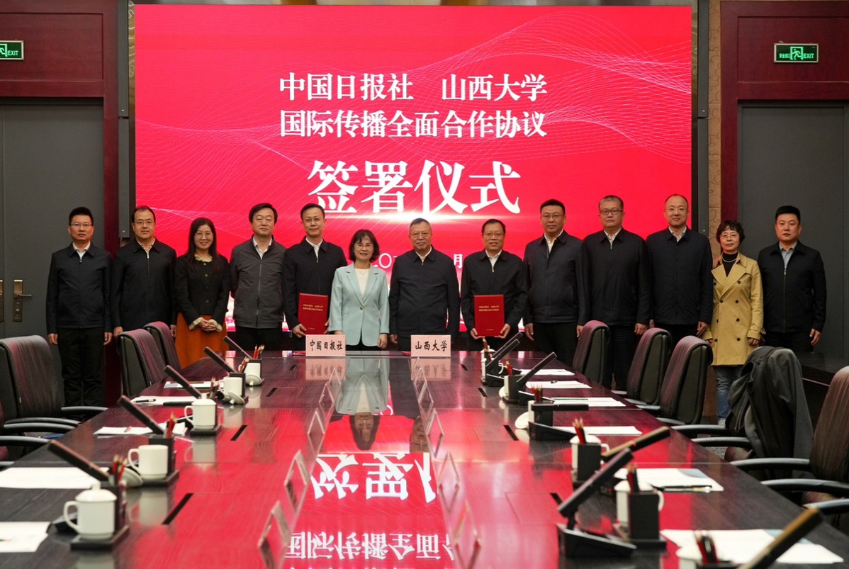 10月14日,中国日报社与山西大学在山西太原签署国际传播全面合作协议。中国日报社副总编辑刘伟玲、山西大学党委书记王仰麟出席签约仪式并致辞。山西大学党委常委、副校长、秘书长郝平,中国日报社事业发展部主任龚铮铮代表双方签署协议。