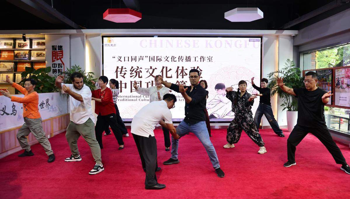 功夫老师教授外籍居民传统功夫,从“抱拳礼”到“马步冲拳”,在招式教学中传递“以柔克刚”的哲学思想。学员们通过亲身练习,领略中华武术内外兼修的文化内涵。“学习功夫让我对中国文化有了更深的理解。”来自也门的亚瑟分享道,“它不仅是防身技艺,更是一种生活哲学。”义乌六义文化融入功夫课堂进行传播,让国际居民在强身健体的同时,深入体会中华文化的精髓与智慧。