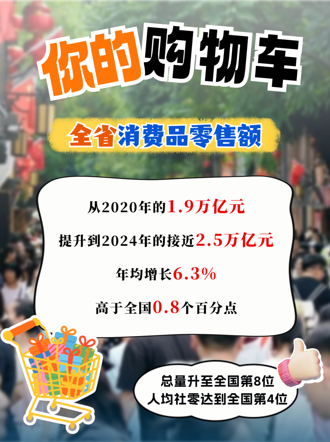 “你可能没意识到,你的每一次消费,都在为福建‘扩容’的市场添砖加瓦。以全国第14位的人口,我们支撑起了全国第8的消费品零售总额!”这份“人均全国第四”的底气,来自于每个福建人充满活力的钱包和敢消费、愿消费的信心。