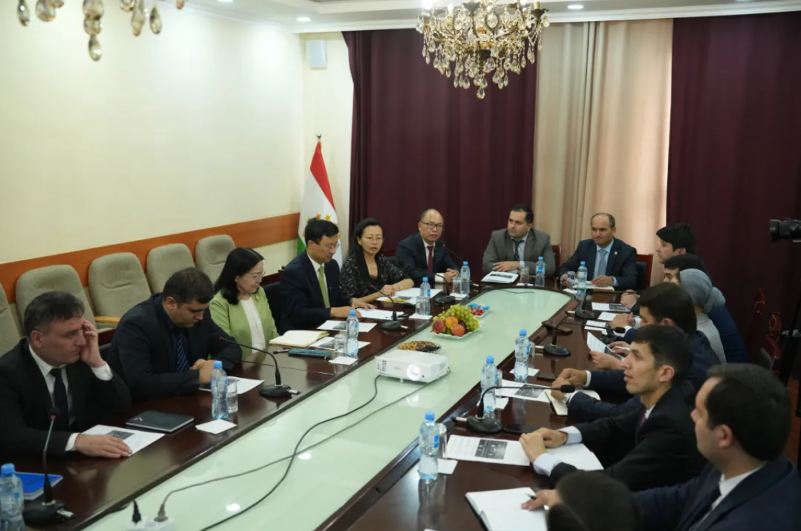 10月13日下午,宣讲团来到塔规模最大的公立综合性高等学府——塔吉克斯坦国立民族大学。民族大学外事副校长纳扎罗夫·库瓦托维奇・阿瓦兹会见了宣讲团一行。司法与检察监督法学系主任马赫穆多夫·伊扎图洛主持了相关活动。