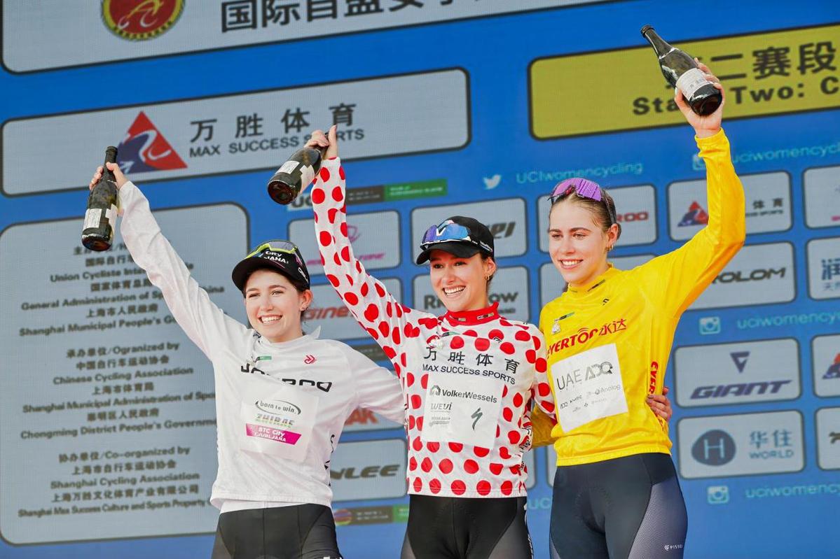 10月15日,2025年永达天恒·环崇明岛国际自盟女子公路世界巡回赛继续飞驰在世界级生态岛的绿色长廊中。次日比赛更加白热化,93名车手们在全长128.6公里的崇东赛段,展开了一场速度与耐力的较量。最终,阿联酋ADQ车队23岁小将范·罗伊延·索菲,夺得第二赛段赛段冠军,获得赛事黄衫及绿衫双衫加身。车队总成绩排名中,罗兰德沃卢伊车队、瓦尔克韦塞尔斯车队和阿联酋ADQ车队暂列前三。
