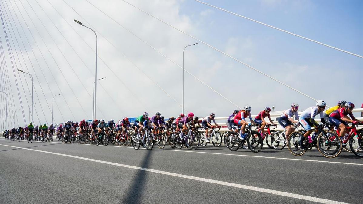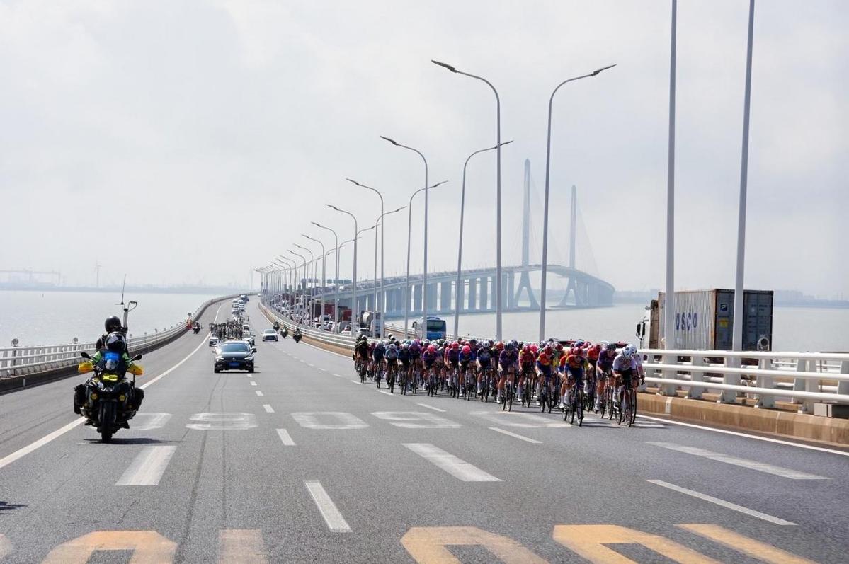作为本届比赛最长的一天,崇东赛段穿越了长兴岛郊野公园、上海长江大桥、东滩湿地公园等标志性景观。首日崇西赛段比赛中脱颖而出的选手们,继续奋勇争先。上午11点10分,车手们从长兴岛郊野公园出发后,很快来到上海长江大桥。所有人形成大集团前行,桥上的顶风和上坡赛道让车队速度有所下降,这也给了爬坡能力强的车手机会,安妮·克妮珍宝以势在必得的态势率先到达爬坡积分点。