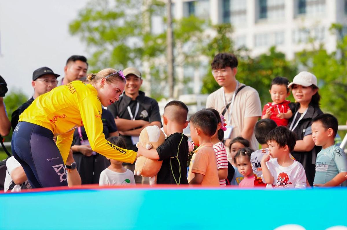 值得一提的是,就在全球顶尖选手们在崇东赛道上破风疾驰时,赛段终点、崇明大道新城公园内,上海市少儿体育联赛平衡车超级联赛(崇明站)暨小小滑步车赛SKIDS环崇明赛站比赛的举行,也吸引了众多关注的目光。当从2岁到5岁不等的孩子们,在起点线上一字排开,大声喊着“我要争第一”为自己鼓劲时,现场观众不禁为自行车运动精神传承的这感人一幕,而纷纷呐喊助威。