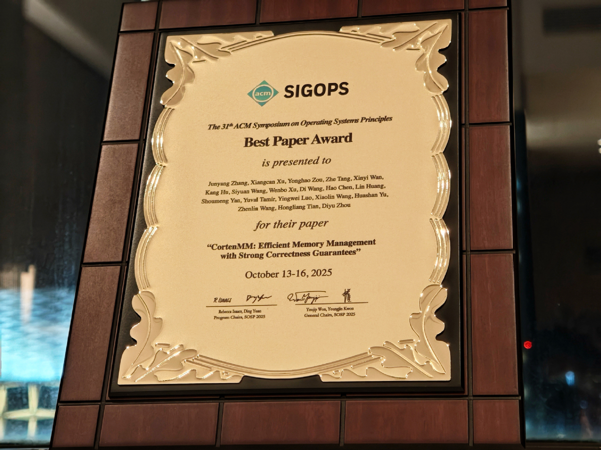 近日,被誉为全球计算机系统领域“奥运会”的顶级学术会议SOSP 2025公布奖项评选结果,“星绽”开源操作系统在高可扩展内存管理方面的研究论文,斩获今年的最佳论文奖(Best Paper Award)。据悉,本届SOSP会议共收到368篇投稿,最终录用66篇,其中最佳论文奖仅设三席。这标志着星绽OS在破解操作系统“性能与安全兼顾”这一难题上的探索,获得了国际学术界的认可。