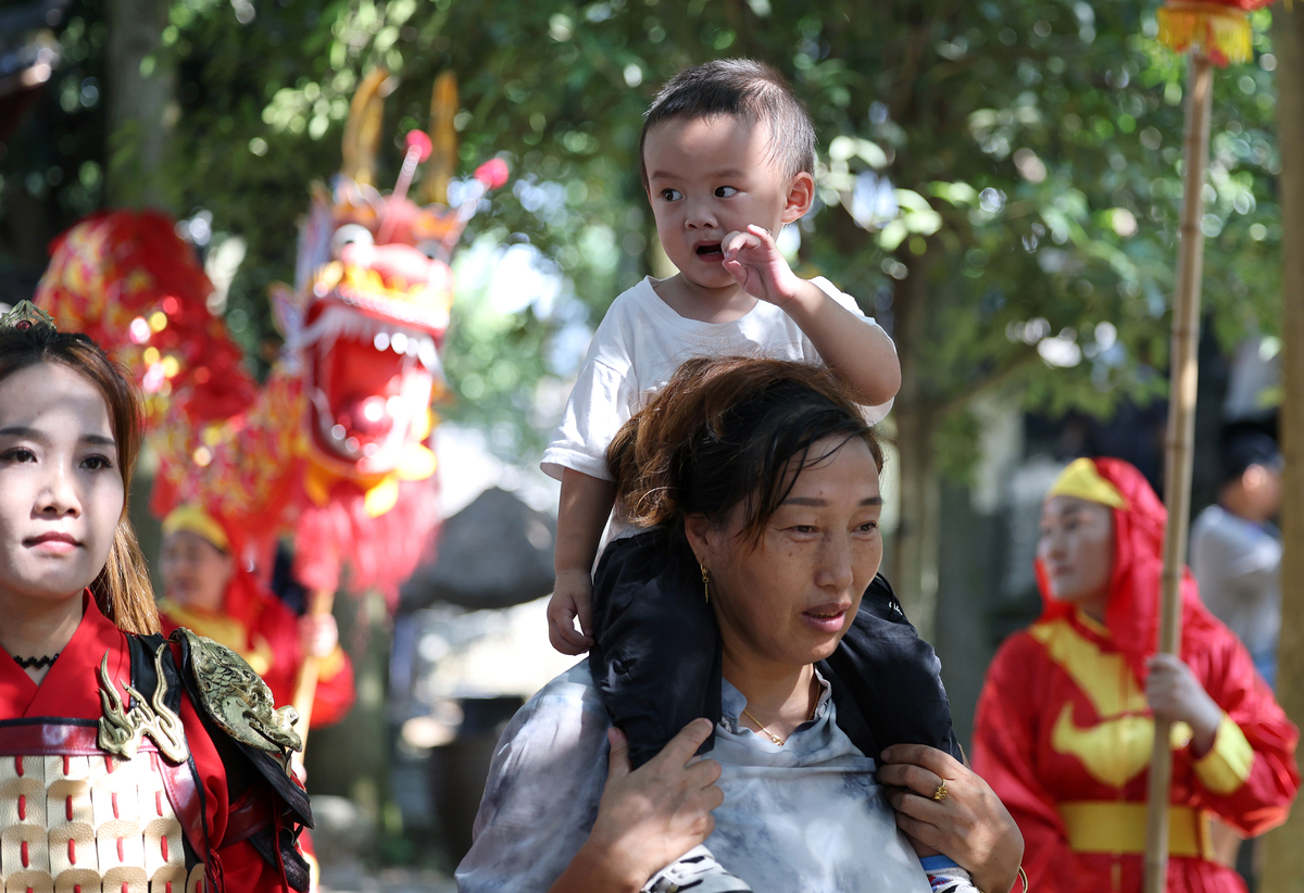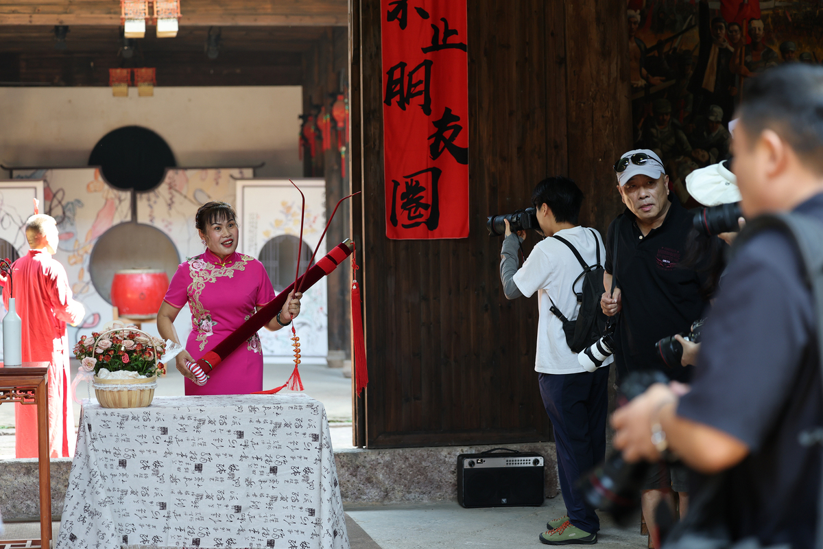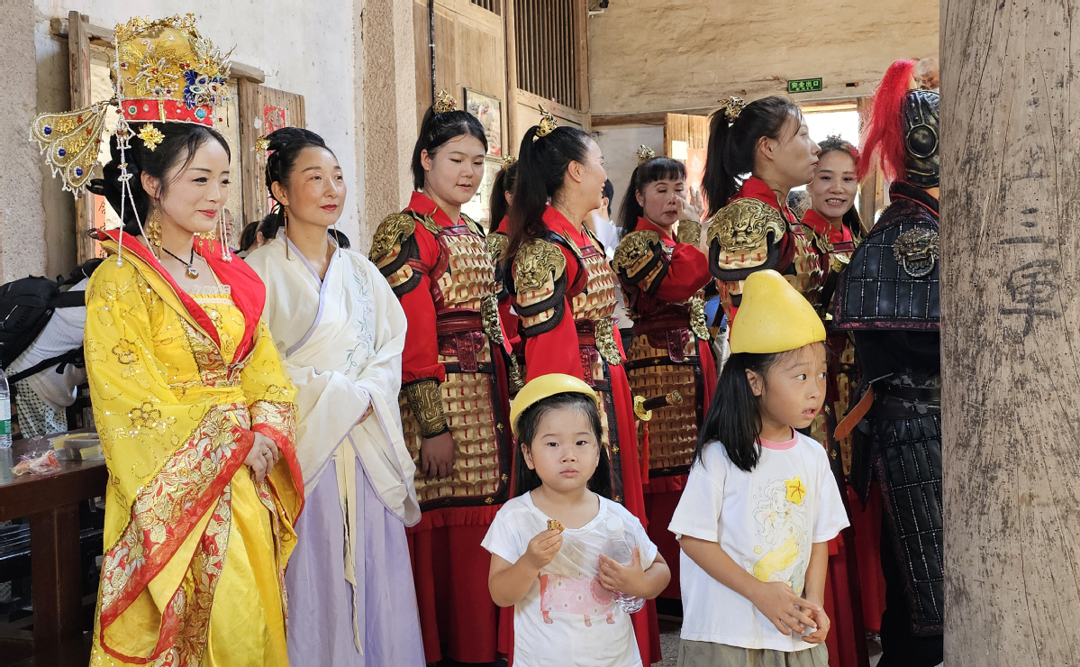 中国日报10月16日电(记者 耿菲菲)2025年10月12日,工作人员身穿传统服装在寺平村表演《银娘省亲》。