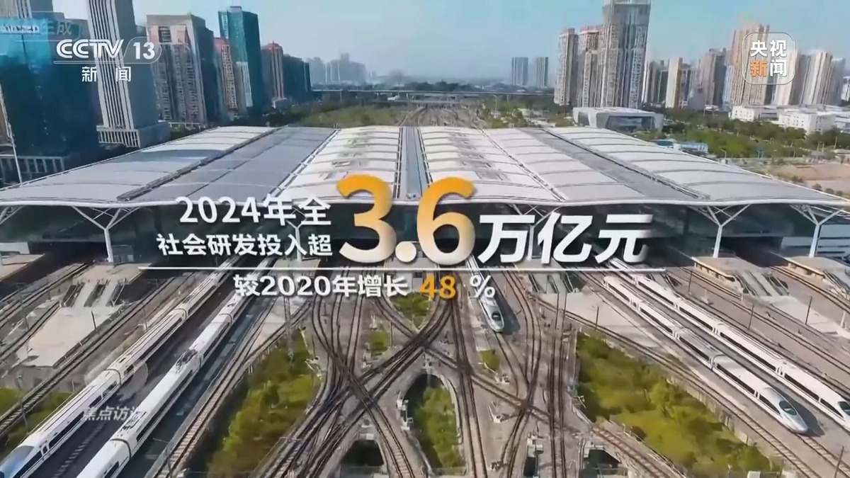 我国研发投入再创新高。2024年全社会研发投入超3.6万亿元,较2020年增长48%;研发投入强度达到2.68%,超过欧盟国家平均水平;研发人员总量世界第一。