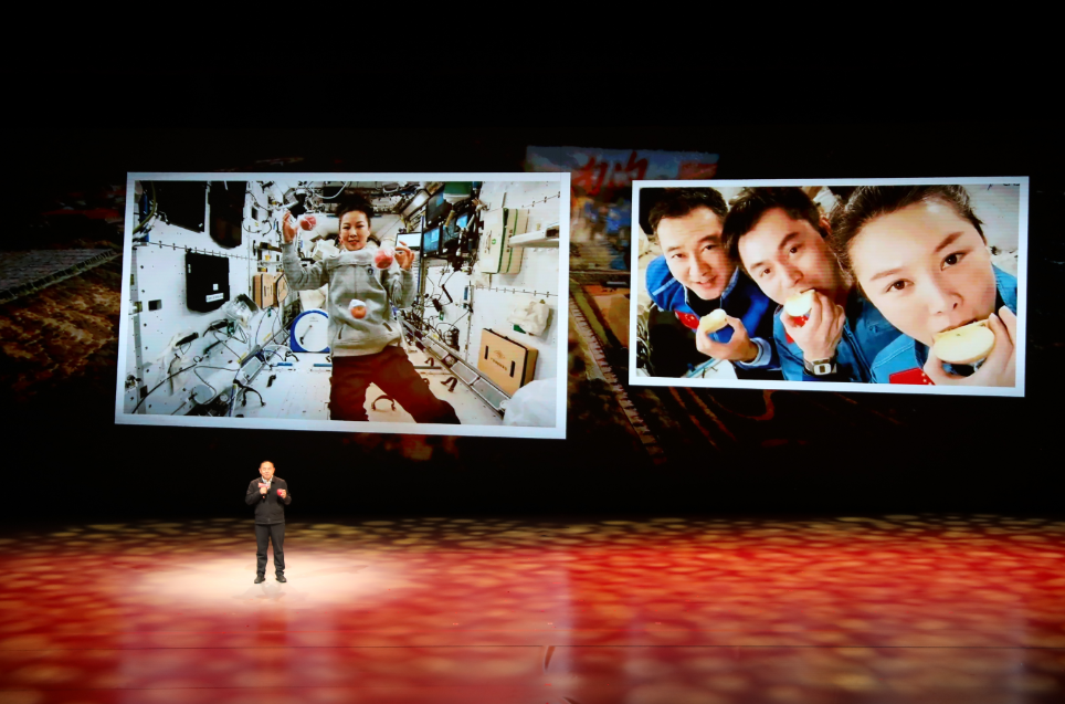 壮美延安篇章,演员靳东以红色、绿色、金色,讲述多彩延安日新月异的发展变化,展现新时代延安儿女以澎湃热血投身强国复兴伟业的动人图景。延安安塞南沟村原驻村干部张光红分享了延安苹果“飞”上太空的喜讯,神舟二十号乘组在中国空间站向活动送来美好祝愿。中国日报社“新时代斯诺”工作室核心成员聂子瑞讲述了越来越多热爱中国的外国记者走进中国、来到延安,见证新时代发展的故事。一曲活泼轻快的《爱青山爱绿水》展现了延安高质量发展的壮美画卷。歌唱家戴玉强演唱《领航》,将现场气氛推向高潮。活动在全场合唱《没有共产党就没有新中国》中结束。