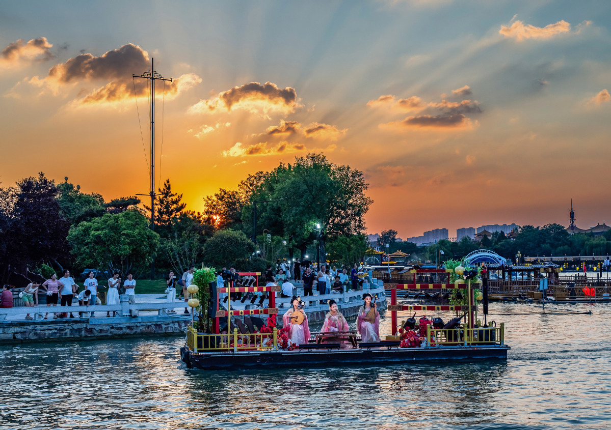 为彰显开封厚重文化底蕴,沿线两岸每天百余场实景演出连番上演,有宋风宋韵的雅致、有北宋市井的繁华热闹、有民间非遗绝活的传承,将千年的时光都揉进了这一路的风景之中。另外游船还推出 “宋韵主题船”:船体以宋代画舫为原型设计,NPC身着宋制服饰提供服务,游客登船即可感受 “穿越千年” 的代入感。游客可在船上互动观赏,将赏菊与宋文化体验深度融合,坐船不仅能赏菊,还能看表演,感觉把开封的秋意和文化都装进了这趟旅程里。” 形成 “人在船中坐,船在画中游,画随菊香动” 的独特意境。