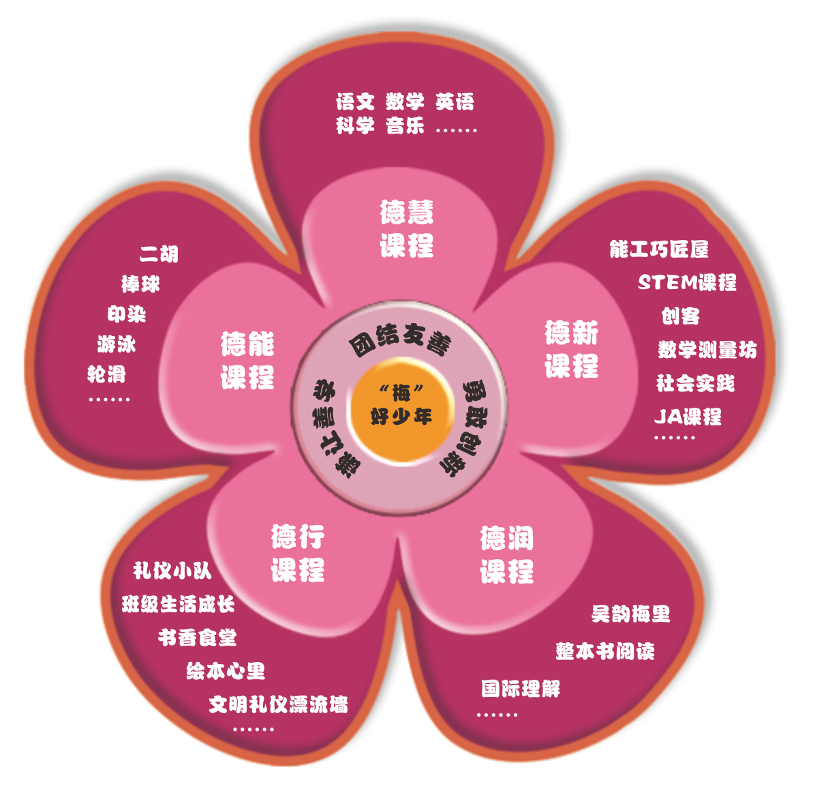 “为每一个儿童设计课程” 是集团始终坚守的办学理念。围绕这一理念,集团构建起 “德慧、德润、德强、德能、德新” 五大课程板块,形成覆盖知识启蒙、品德塑造、体质强健、艺术培育、劳动实践的多元育人体系,为 “梅・好少年”(有自信、爱探究、乐健体、善表达)的成长搭建全方位平台。