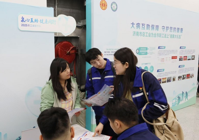 在政策咨询区,工作人员手持宣传册,详细介绍着"泉心互助"职工大病互助保障项目。这份来自工会的坚实保障,秉持"低成本、低缴费、广覆盖、广受益"的宗旨,历经多年规范运行,已成功走出一条富有济南特色的职工互助保障之路。截至2025年9月,项目累计吸引超过641.72 万人次参与,为2.93万人次的患病职工送去温暖,发放救助金8801.27万元。