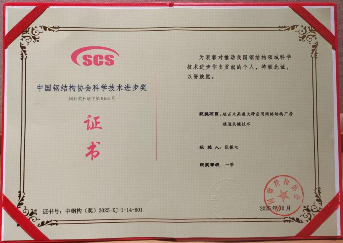 10月14日,2025年度中国钢结构科学技术奖表彰大会在南宁举行,中铁十局一公司研发的《超百米高度大跨空间网格结构厂房建造关键技术》课题,凭借突出科研成果与创新应用,斩获“中国钢结构协会科学技术进步一等奖”,这也是该公司在钢结构施工领域推动交通基建技术变革的又一实践。