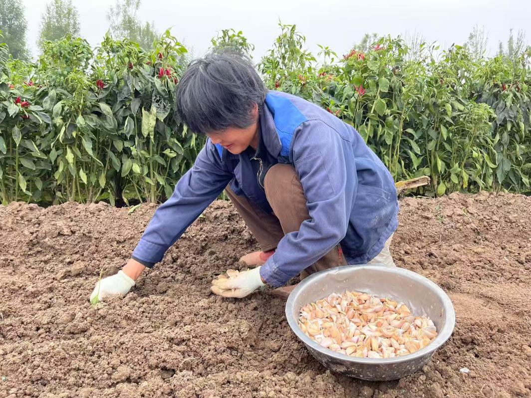 “趁着不下雨,赶紧把蒜种上。”近日,在河南开封杞县葛岗镇花西村的地里,正在种蒜的王大姐一边摆放蒜种一边说道。