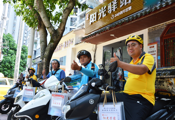 快递员化身为“阳光管家“宣传员,携政策宣传单入户宣传