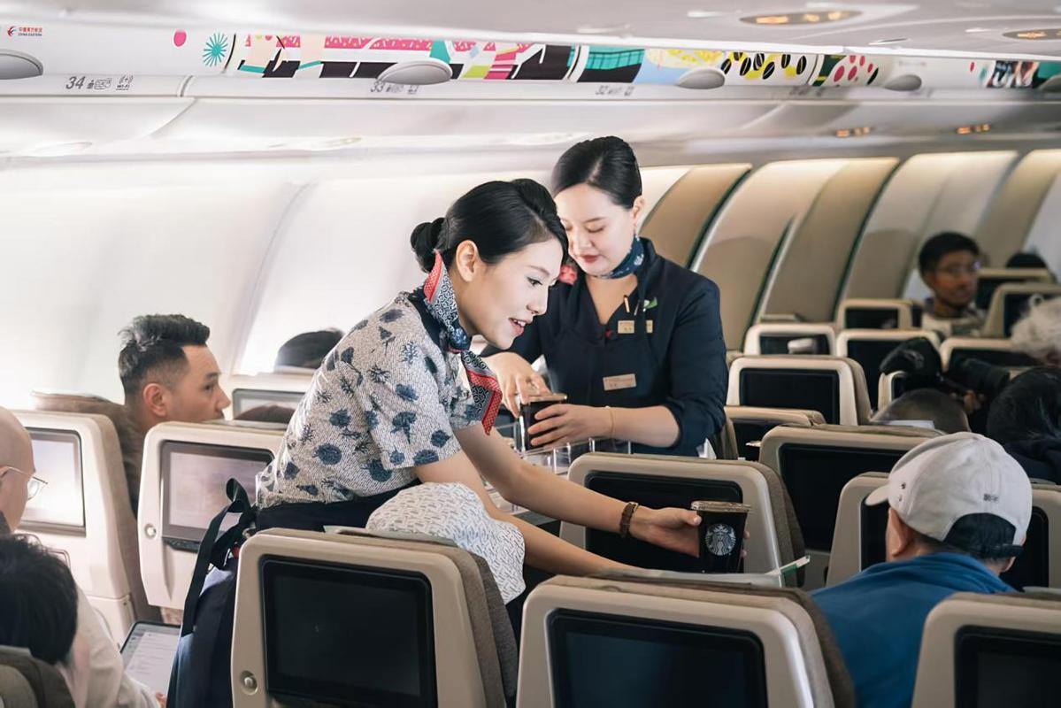 3小时的旅程中,200余名旅客在万里高空,在特别布置的机舱内,一起品尝了由星巴克臻选云南孟连日晒黄波旁品种咖啡豆制作的冷萃咖啡。