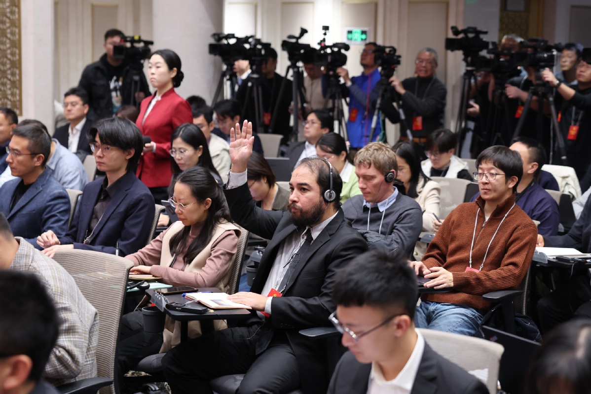 10月24日,记者在新闻发布会上举手提问。中国日报记者 王壮飞 摄