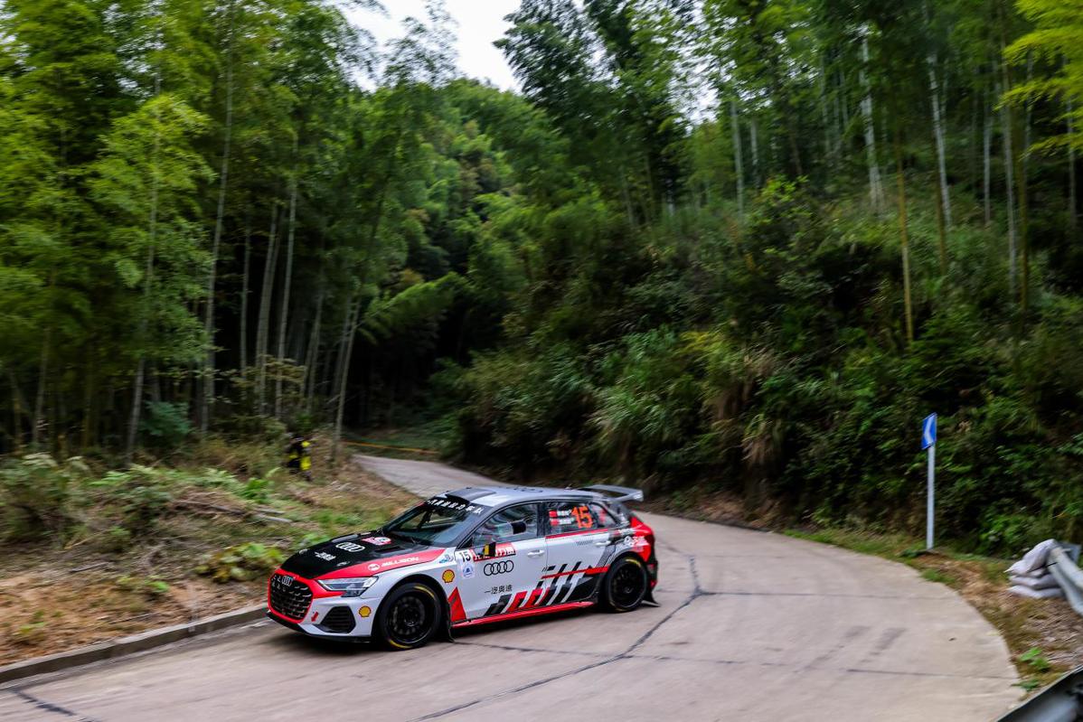 浙江同联拉力车队的徐俊/黄少军在今日均以强劲的速度稳定占据全场领跑位,SS1即建立了5秒的领先优势。在后续的4个赛段,徐俊/黄少军凭借着默契配合,持续拉开与对手的时间差距,以53分42秒8的总成绩高居第一。首次亮相龙游拉力赛的一汽奥迪拉力车队表现优异,林德伟/乐柯鹏排名全场第二,OSIAS天境车队的姚秀磊/陈远松位居第三。