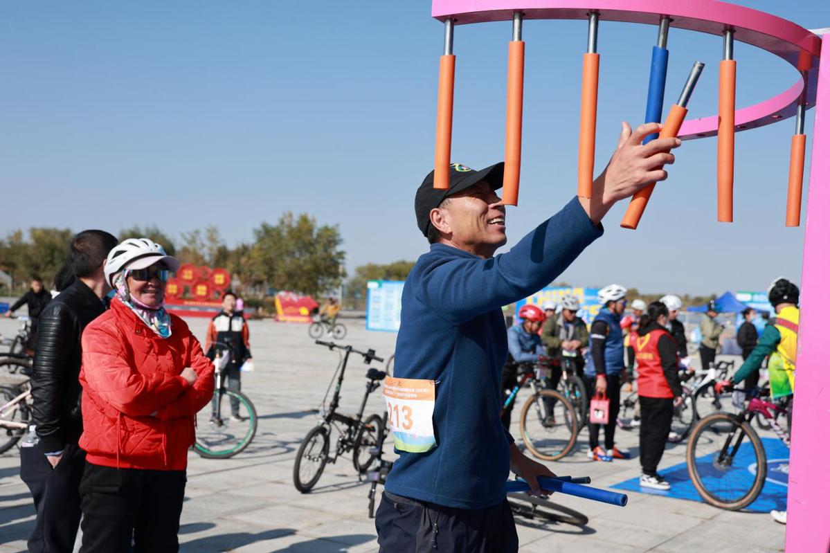 赛事配套活动同样精彩纷呈。“骑游寻迹·魅力兴庆”打卡活动引导参与者在骑行途中探寻黄河沿岸人文地标,完成集章任务即可兑换特色文创纪念品;体彩趣玩营设置多项互动游戏,吸引众多选手及游客参与,现场欢笑不断;黄河能量市集则汇集各类小吃与休憩服务,成为选手放松交流、观众惬意等候的温馨空间,为参赛选手带来“可赛、可游、可品、可乐”的赛事体验,让大家在竞技之余,也能深度感受魅力兴庆的活力与温情。