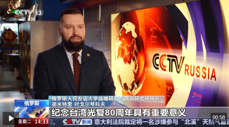 俄罗斯人民友谊大学战略研究与预测研究所所长 德米特里·叶戈尔琴科夫:纪念台湾光复80周年具有重要意义,象征着中国人民心向统一。战胜日本军国主义是世界反法西斯战争的重要组成部分,这一历史应该被铭记。