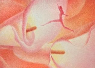 这种力量贯穿于她的创作脉络。无论是《绽放的自由》中女孩跳跃于花朵之间的自由姿态,还是《那些影子》中痛苦化作花影的象征,都体现出困境中自我修复与重生的能力。李浩喆用细腻的画面柔软,不是退让,而是面对复杂世界时的另一种坚定。这一艺术理念在她的展览实践中得到了持续的延展。从河北美术学院美术馆的个展《柔软之境》,到纽约 :iidrr 艺术馆 的《梦境》与 Chinatown Soup 的《有事发生》,再到香港 ZtoryTeller 的《十二月之诗》,李浩喆以不同的空间与叙事方式探讨“柔软”在现实与梦境之间的形态变化。她以粉质色调与半透明肌理营造出介于具象与抽象之间的氛围,使“柔软”从感官经验转化为一种心理空间。每一场展览都是一次情绪的延伸——在静谧的观看中,观众得以进入她构建的内在秩序,感受到柔光背后的力量与张力。