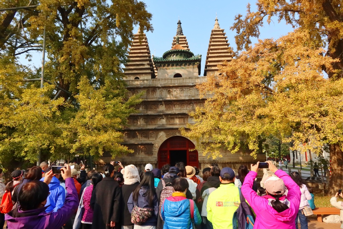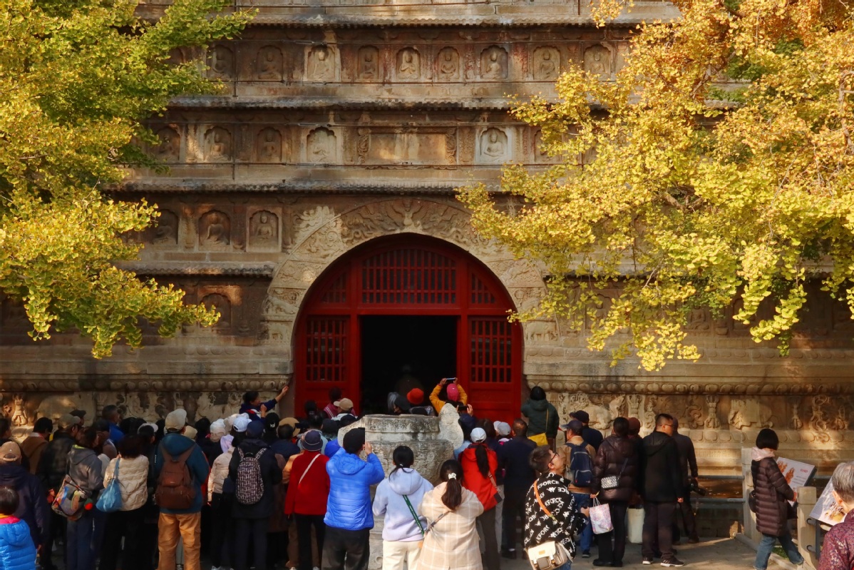 10月28日,游客在北京石刻艺术博物馆(五塔寺)游览。中国日报记者 姜东 摄